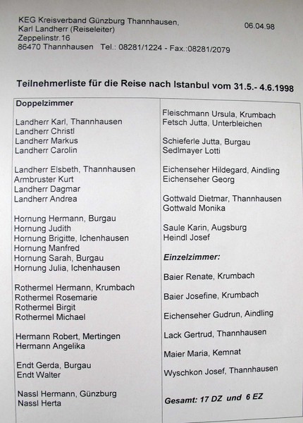 KEG-Flugreise nach Istanbul vom 31. Mai - 4. Juni 1998 mit 40 Teilnehmern